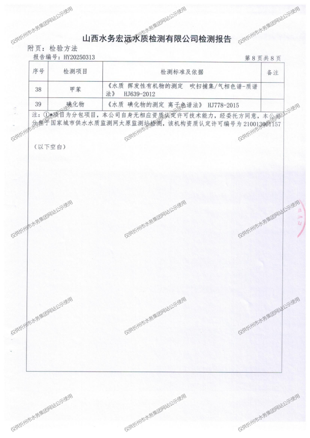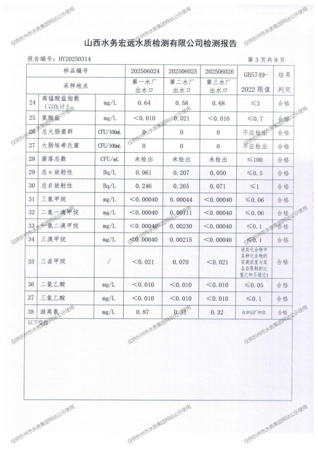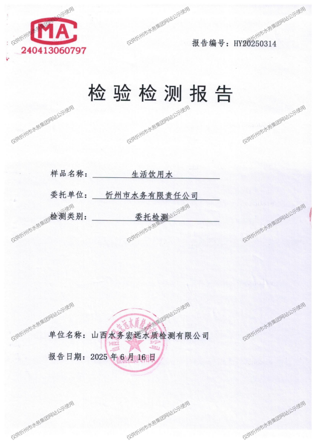 忻州城區(qū)公共供水水源水、出廠水、管網(wǎng)水、管網(wǎng)末梢水2025年6月份水質(zhì)信息公示